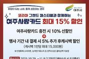 서울복지타임즈 이재연 기자 | 여주시는 ‘2025 코리아 그랜드 페스티벌’ 기간인 오는 10월 29일부터 11월 9일까지 ‘여주사랑카드 최대 15% 할인’ 행사를 한다고 밝혔다. 여주사랑카드 사용자는 충전 시 10% 선할인(인센티브 충전)을 받을 수 있으며, 행사기간 내 결제 시 추가로 5% 후캐시백 지원을 받을 수 있다. 5% 캐시백 행사는 예산 소진시까지 1인 최대15,000원까지 혜택을 받을 수 있도록 지원하며, 지원 내역은 모바일 경기지역화폐 앱에서 실시간으로 확인할 수 있다고 안내했다. (5% 캐시백 행사에 민생회복 소비쿠폰, 농어민기회소득 등 정책수당은 결제 금액에 포함되지 않는다.) 코리아 그랜드 페스티벌은 내수 활성화를 위해 중소벤처기업부, 산업통상자원부 등 정부가 주관하는 소비 축제로 10개 부처와 3만개 유통사가 참여하며, 지역사랑상품권과 디지털온누리상품권 추가 할인, 상생소비복권, 카드사 캐시백 이벤트 등을 진행한다. 여주시 일자리경제과 관계자는 “이번 행사를 통해 지역 내 소비 진작, 지역 소상공인들의 매출 증대에 도움이 되기를 바란다”라며, “시민분들의 많은 관심과 참여를 바란다”고 말했