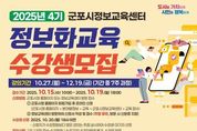 서울복지타임즈 이재연 기자 | 군포시는 시민들의 정보화 시대에 대한 적응 능력 향상 및 정보 소외 계층의 디지털 격차 해소를 위해 운영되는 ‘2025년 4기 시민정보화교육’의 수강생을 오는 10월 15일부터 10월 19일까지 모집한다고 13일 밝혔다. 이번 교육은 컴퓨터와 스마트기기 기초 사용법부터 최신 인공지능(AI) 활용 기술까지 다양한 주제로 구성되며, 군포시민을 대상으로 총 10개 강좌가 운영된다. 수강료는 무료이나, 강좌에 따라 교재를 개별 구매해야 할 수도 있다. 수강신청은 2025년 10월 15일 오전 10시부터 10월 19일 오후 6시까지 가능하며, 군포시청 홈페이지 또는 군포시 정보교육센터(산본로324번길 8, 504호, 주말 휴무) 방문을 통해 신청할 수 있다. 이번 교육에서는 컴퓨터나 스마트폰에 익숙하지 않은 초보자를 대상으로 하는 ▲컴퓨터 기초 ▲스마트폰 기초 및 활용 ▲실용인터넷 강좌 뿐만 아니라 실생활과 업무에 유용한 ▲속성 한글 ▲엑셀 기초 ▲스마트폰 중급 강의도 포함되어 있다. 또한 최신 기술을 반영한 ▲동영상 제작 ▲3D 프린팅 ▲ChatGPT · 생성형AI ▲AI활용 유튜브 콘텐