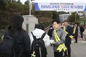 서울복지타임즈 이재연 기자 | 전라남도교육청이 2026학년도 대학수학능력시험일인 13일 시험장을 찾아 수험생을 응원했다. 김대중 교육감을 비롯한 도교육청 간부들은 이날 오전 75지구 제7시험장인 순천복성고등학교 교문 앞에서 시험을 치르기 위해 들어서는 수험생들을 반갑게 맞이하며 최선을 다해줄 것을 당부했다. 순천복성고 현장에는 김 교육감과 박철완 중등교육과장, 허동균 순천교육지원청교육장, 강종수 순천복성고 교장 등이 “파이팅”을 외치며 수능 대박을 기원했다. 이날 오전 황성환 부교육감도 교육청 간부들과 함께 문태고등학교를 방문해 수험생들을 격려했다. 김대중 교육감은 “모든 수험생 여러분, 정말 수고 많았다. 오늘은 여러분의 날이다”며 “결과에 대한 부담은 내려놓고, 그동안의 노력이 만들어준 자신감을 믿으며 차분히, 끝까지 최선을 다하길 바란다”고 말했다. 한편, 이날 목포·여수·순천·나주·광양·담양·해남 등 7개 시험지구, 총 46개 시험장에서는 1만 4,952명의 수험생이 2026학년도 대입 수능시험을 치른다.