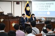 서울복지타임즈 이재연 기자 | 대전 중구의회는 17일 대전대성고등학교 학생들을 대상으로 의회 견학프로그램을 진행했다. 이번 견학은 학생들이 민주주의와 주민참여의 현장을 직접 체험하고, 대의제의 원리와 기능에 대해 알아보기 위해 마련됐다. 학생들은 상임위원회, 본회의장 등 주요 의회 시설을 둘러보고, 의회와 구의원의 역할, 회의진행 과정에 대한 설명을 청취했으며, 직접 의장석에 안자 의사봉을 두드려보는 체험을 통해 의정 활동에 대한 이해를 높였다. 또한 오은규 의장, 김옥향 부의장과의 질의응답 시간을 통해 학생들은 평소 궁금해했던 조례나 의정활동에 대한 답변을 들으며 생생한 배움의 시간을 가졌다. 오은규 의장은“오늘 견학을 통해 학생들이 의회의 역할과 민주주의의 가치를 배우는 소중한 계기가 됐길 바란다”며, “앞으로도 미래 세대가 올바른 민주의식을 가질 수 있도록 노력하겠다”고 말했다.