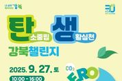 서울복지타임즈 이재연 기자 | 서울 강북구는 오는 9월 27일 오전 10시부터 오후 4시까지 북서울꿈의숲 일대에서 ‘탄생 강북 챌린지(탄소중립 생활실천 강북 챌린지)’와 ‘2025 나눔과 순환의 즐거운 장터’를 개최한다. 탄소중립과 자원순환 행사를 연계해 추진함으로써 주민들의 공감대를 형성하고 환경정책에 대한 실천 의지를 확산하는 계기가 될 것으로 기대된다. ‘탄생 강북 챌린지’의 ‘탄생’은 ‘탄소중립 생활실천’의 줄임말로 이번 행사는 탄소중립 실천 약속을 비롯해 플라스틱 주제관 등 5개 마당 35개 체험 프로그램으로 구성된다. 탄소중립 실천 약속은 참가자들이 ‘나만의 실천 약속’을 작성해 지구 조형물에 부착하고 탄소중립을 약속하는 방식으로 운영된다. 플라스틱 주제관에서는 플라스틱 과다 사용의 심각성을 알리고 소비 감축을 유도하는 전시·체험이 마련된다. 또한 놀이·체험·산업·홍보 마당에서는 재활용품을 활용한 키링 만들기, 태양광 RC카 레이싱, 자전거 발전 솜사탕 만들기, 전기·수소차 시승 및 저탄소 제품 전시, 환경 정책 홍보 등 35개의 다양한 프로그램이 운영된다. ‘2025 나눔과 순환의 즐거