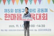 서울복지타임즈 이재연 기자 | 서울 성동구는 지난 11월 1일 살곶이체육공원에서 성동구 아파트 단지들이 한자리에 모여 ‘제5회 아파트공동체 한마음 체육대회’를 성황리에 개최했다. 올해로 5회째를 맞는 이번 체육대회는 성동구 아파트공동체 활성화단체 연합회(성아공 연합회)가 중심이 된 아파트공동체 한마음 체육대회 추진위원회 주관으로 진행됐으며, 성동구청과 각 아파트 공동체 활성화단체가 협력하여 원활한 행사 진행을 지원했다. 성동구가족센터, 옥수종합사회복지관 등 관내 복지시설에서는 다양한 체험부스 등을 운영했다. 체육대회는 관내 32개 아파트에서 약 650명의 입주민이 참여하여, 각기 다른 아파트 단지 주민들이 4개의 팀을 이뤄 협력과 경쟁을 즐기는 방식으로 진행됐다. 참가자들은 풍선 기둥 만들기, 한마음 공굴리기 등 가족과 이웃들이 함께 즐길 수 있는 스포츠 종목에 참여도 하고, 입주민 장기 자랑, 아이들을 위한 키즈존, 푸드트럭 등 다양한 볼거리, 먹을거리 등으로 즐거운 시간을 보냈다. 특히, 이번 체육대회는 단순히 스포츠를 즐기는 것을 넘어, 아파트 단지 내 주민들 간의 유대감을 깊게 만드는 기회가 됐다. 경기