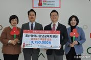 서울복지타임즈 이재연 기자 | 울산 강남교육지원청은 연말연시를 맞아 29일 울산사회복지공동모금회에 이웃사랑 나눔 성금 379만 원을 전달했다. 울산사회복지공동모금회에서 열린 전달식에는 임채덕 교육장을 비롯해 양호영 울산사회복지공동모금회 사무처장 등이 참석했다. 강남교육지원청은 해마다 희망 직원을 대상으로 매달 급여에서 ‘작은 사랑의 씨앗’으로 일정 금액을 공제해 성금을 모았다. 강남교육지원청은 2014년부터 사회복지단체에 기부하며 지역사회와 상생하는 나눔 문화를 실천하고 있다. 임채덕 교육장은 “연말을 맞아 직원들의 따뜻한 마음을 모아 지역사회에 온정을 전하고자 했다”라며 “앞으로도 교육공동체의 사회적 책임을 실천하며 지역사회와 함께 성장하는 나눔 활동을 이어가겠다”라고 말했다.