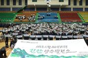 서울복지타임즈 이재연 기자 | 진안군이 26일 오후 진안문예체육회관에서 군민 500여 명과 주요 내빈이 참석한 가운데 ‘진안양수발전소 유치 성공기원 범군민 결의대회’를 성황리에 마무리하고, 유치 성공에 대한 강력한 의지를 대내외에 선포했다. 이날 결의대회에는 전춘성 진안군수를 비롯해 김관영 전북특별자치도지사, 안호영 국회의원, 동창옥 진안군의회 의장, 그리고 한국동서발전 권명호 사장 등이 참석하여 진안의 도약에 힘을 실었다. 먼저 성공기원공연으로 준비된 붓글씨 공연(캘리그라피)에서는 ‘새로운 시작, 100년 미래 진안양수발전소’라는 문구를 역동적인 붓놀림으로 그리며 진안의 강력한 의지를 예술적으로 승화시켜 참석자들의 큰 박수를 받았다. 이어 진행된 구동수 위원장과 신갑수 위원장의 결의문 낭독 직후 두 위원장의 선창에 맞춰 500여 군민이 하나 된 목소리로 일제히 손 피켓 펼치기 퍼포먼스가 진행돼 군민의 하나 된 힘으로 양수발전소를 진안에 유치하겠다는 결의를 다졌다. 특히, 마지막 유치 성공 다짐 퍼포먼스는 참석자들의 마음을 하나로 모았다. 군민과 주요 내빈들이 행사 시작 전 대형애드벌룬