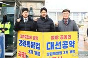 서울복지타임즈 이재연 기자 | 강원특별자치도의회 기획행정위원회는 11월 27일 여의도 국회 앞에서 강원특별자치도 설치 및 미래산업글로벌도시 조성을 위한 특별법(강원특별법) 3차 개정안의 조속한 처리를 촉구하는 릴레이 1인 시위를 이어갔다. 기획행정위원회는 이날 시위를 통해 강원특별법 3차 개정안이 지역 발전의 제도적 기반이자 도민의 오랜 염원을 담은 법안임을 강조하며, 국회가 조속히 심사에 착수해 실질적인 논의가 이뤄질 것을 촉구했다. 문관현 위원장은 “강원특별법 개정은 지역의 미래와 직결된 300만 도민의 절실한 요구”라며 “국회가 도민의 기대에 부응해 책임 있는 자세로 조속히 논의를 마무리해야 한다”고 말했다. 한편, 기획행정위원회는 강원특별법 3차 개정안이 정기국회 기간 내 처리될 수 있도록 관계 부서와 긴밀히 협력하고, 법안 통과를 위해 현실적인 방안을 지속적으로 모색해 나갈 계획이다.