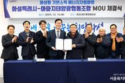 서울복지타임즈 이재연 기자 | 화성특례시는 16일 시청 중앙회의실에서 마파지태양광협동조합과 ‘화성형 기본소득 에너지자립마을 조성을 위한 업무협약(MOU)’을 체결했다. 이날 협약식에는 정명근 화성특례시장을 비롯해 김진원 마파지태양광 협동조합장 등이 참석해, 주민주도형 재생에너지 기반 에너지자립마을 조성사업의 추진에 상호 협력하기로 했다. 이번 사업은 국유지를 활용해 주민이 사업비 전액을 부담해 100% 주민주도형 ‘에너지자립마을’을 조성하는 경기도 최초 사례로, 재생에너지 수익을 마을 복지와 기본소득으로 연계하는 ‘화성형 기본사회’ 정책의 첫 시범 모델이다. 마파지태양광협동조합은 석포6리 주민 25가구가 공동 운영하는 협동조합으로, 사업주체로서 장안면 석포리 823번지 제방 국유지에 415kW 규모의 태양광 발전설비를 설치한다. 사업비는 총 5억 2천만 원으로 전액을 주민이 자부담한다. 시는 협약에 따라 인허가, 관계기관 협의, 제도 검토 등 사업 추진에 필요한 행정적·제도적 지원을 담당하고, 에너지자립마을이 안정적으로 운영될 수 있도록 정책적 기반 마련에 협력한다. 또한 재생에너지 수