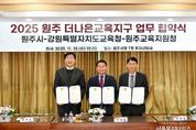 서울복지타임즈 이재연 기자 | 원주시는 지난 18일 시청 7층 투자상담실에서 ‘원주 더나은교육지구’ 지정 연장 업무협약을 체결했다. 협약식에는 원강수 원주시장, 신경호 강원특별자치도 교육감, 김성진 원주교육지원청 교육장이 참석했다. 더나은교육지구는 원주시와 강원특별자치도교육청, 원주교육지원청이 협약을 통해 구축하는, 마을과 학교가 함께하는 지역 교육공동체다. 이번 협약은 1기(2018-2021)와 2기(2022-2025)에 이어 추진되는 3기 사업으로, 2026년부터 2029년까지 4년간 운영된다. 원주시와 도 교육청이 매년 각각 2억 원씩, 총 16억 원의 사업비를 지원한다. 3기 사업 지난 사업 추진 실적을 바탕으로 새롭게 개편됐으며, ‘배움과 성장, 문화예술로 동행하는 원주’를 비전으로 4개의 추진 과제와 12개의 세부 사업으로 구성됐다. 이를 통해 지역과 학교가 함께 성장하는 교육 기반을 더욱 강화할 계획이다. 특히 3기에서는 비전에 걸맞은 다양한 문화예술 프로그램이 추진된다. 원주의 특화 산업인 한지 교육을 통해 민·관·학 협력 분위기를 조성하고, 지역 문화·관광 자원을 직접 체험할 수 있