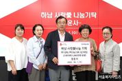 서울복지타임즈 이재연 기자 | 지난 1일 청운사는 하남 사랑愛나눔 성품 및 성금으로 라면 100박스, 백미 10kg 100포, 성금 500만원(1,060만원 상당)을 기탁하고 기탁식을 가졌다. 청운사는 2020년부터 관내 취약계층을 위한 성품 및 성금 기탁을 통해 꾸준한 나눔 문화를 실천하고 있으며, 올해도 하남시에 성품 및 성금을 기탁하며 나눔을 실천했다. 이날 기탁식에는 이현재 하남시장을 비롯하여 청운사 노혜원 사무장, 조순례 신도회장, 김영숙 부회장, 전인숙 총무가 참석하여 자리를 빛냈다. 노혜원 사무장은“지역내 어려운 이웃들에게 조금이나마 도움이 되길 바라고, 풍성한 한가위 명절이 되길 바란다”고 전했다. 이현재 하남시장은“2020년부터 끝임없이 나눔을 실천해 준 청운사에 감사드리며, 어려운 이웃이 따뜻한 추석이 되실 수 있도록 잘 전달하겠다”고 말했다. 이날 기탁한 성금 및 성품은 동 행정복지센터 및 하남시푸드뱅크를 통해 취약계층에게 배부될 예정이다.