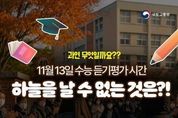 서울복지타임즈 이재연 기자 | 하늘을 날 수 없는 것들은? ■ 전면 통제대상 · 모든 항공기 이륙 금지 (비행 중 항공기 → 3km 이상 상공에서 대기) · 헬기 · 경량항공기 그리고 초경량 비행장치(드론 포함) 모두 STOP! * 예외: 비상·긴급 항공기 영어 듣기평가에 방해가 되는 '항공기소음 최소화' ■ 언제 통제되나요? 11월 13일(목) 13:05~13:40(총 35분) ※ 듣기평가 전·후 5분 포함 수험생에게 조용한 하늘을! 국민 여러분의 협조를 부탁드립니다.