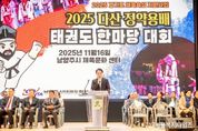 서울복지타임즈 이재연 기자 | 남양주시의회는 16일 남양주체육문화센터 실내체육관에서 열린 ‘다산 정약용배 태권도 한마당대회’에 참석해 참가선수들을 격려했다. 남양주시체육회가 주최하고 남양주시태권도협회가 주관한 이번 대회는 시민 건강 증진과 생활체육 활성화를 위해 마련됐으며, 1500여명의 참가선수들이 품새, 겨루기, 격파, 태권체조, 스피드발차기 등 다양한 종목을 통해 그간 준비한 기량을 마음껏 펼치며 실력을 겨뤘다. 이날 개회식은 조성대 남양주시의회 의장을 비롯해 시의원, 주광덕 시장, 국회의원, 도의원, 강신관 남양주시태권도협회장 등 주요 인사들이 참석했으며, △개회선언 △내빈소개 △표창 및 감사패 수여 △대회사 △환영사 및 축사 △태권도 시범공연 △기념촬영 순으로 진행됐다. 조성대 의장은 축사에서 “실학의 고장 남양주에서 정약용 선생의 배움과 실천 정신이 깃든 이름으로 열린 이번 대회는 그 의미가 더욱 특별하며, 태권도야말로 예의와 질서, 존중의 정신을 배우는 훌륭한 교육”이라고 강조했다. 이어 “상대에 대한 배려와 정정당당한 승부뿐만 아니라 진정한 승리는 이기는 것보다 자신을 이겨내는데 있다