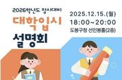 서울복지타임즈 이재연 기자 | 서울 도봉구가 12월 15일 오후 6시 도봉구청 2층 선인봉홀에서 2026학년도 대입 정시 전략 설명회를 개최한다. 설명회에는 서울시교육청 대학진학지도지원단 소속의 영동일고 윤희태 교사가 강사로 나서 대입 정시합격을 위한 지원전략을 제공한다. 이번 설명회는 지난 13일 수학능력시험을 치르고 정시 지원을 앞둔 수험생과 학부모들에게 실질적인 도움을 줄 것으로 기대된다. 선착순 300명까지 모집하며, 신청은 11월 27일 오전 9시부터 도봉구청 누리집(소통참여→인터넷 접수·예약)에서 가능하다. 이외에도 수험생의 성공적인 정시 지원을 위해 도봉구 진학상담실에서 정시 컨설팅을 진행한다. 12월 8일부터 23일까지 8일간 운영하며, 시간은 오전 9시부터 오후 8시까지다. 앞서 모집한 도봉구 거주 또는 학교에 재학 중인 고등학생 3학년(N수생 및 학교 밖 청소년 포함) 64명을 대상으로 한다. 오언석 도봉구청장은 "구는 수험생의 성공적인 진학 지원을 위해 올 한해 주요 시기별로 입시 설명회, 입시 교실뿐만 아니라 수시·정시·진학 컨설팅을 진행해왔다."라며,