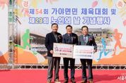서울복지타임즈 이재연 기자 | 합천군은 26일 가야면 해인중학교 운동장에서 열린 제54회 가야면민체육대회 및 제29회 노인의 날 기념행사 현장에서 부산·울산지역 향우가 고향사랑기부금 600만원을 기탁했다고 밝혔다. 이날 기탁은 가야면 체육회가 주최한 가야면민체육대회 행사 중 진행됐으며, 부산향우와 울산향우(익명 요청)가 각각 300만원씩 고향사랑기부금을 전달했다. 기탁식에는 두 향우가 직접 참석하지 못했으며, 최덕규 전 가야농협장과 임재후 가야면체육회장이 대신 전달해 뜻깊은 마음을 전했다. 기탁된 성금은 합천군 고향사랑기금으로 적립돼 지역 복지증진과 주민 생활여건 개선을 위한 사업에 사용될 예정이다. 김윤철 합천군수는 “타지에서도 늘 고향을 잊지 않고 따뜻한 정성을 보내주신 향우 여러분께 깊이 감사드린다”며 “소중한 기탁금은 지역사회를 위해 의미 있게 활용하겠다”고 전했다. 고향사랑기부제는 개인이 주소지를 제외한 지방자치단체에 연간 2,000만 원 이하의 금액을 기부할 수 있으며, 세액공제(10만 원까지 전액, 초과분 16.5%)와 함께 30% 상당의 답례품(지역특산물·합천사랑상품권