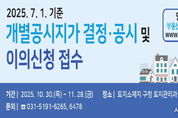 서울복지타임즈 이재연 기자 | 수원시 권선구는 다가오는 30일에 개별공시지가를 결정·공시하고 10월 30일부터 11월 28일까지 이의신청을 받는다. 이번에 공시되는 개별공시지가 대상 토지는 지난 1월 1일부터 6월 30일까지 토지이동(분할, 합병, 지목변경 등)이 발생한 599필지이고, 감정평가사의 검증과 수원시 부동산가격공시위원회 심의를 통해 결정됐다. 지가열람은 권선구청 토지관리과 및 관할 행정복지센터에서 가능하며, 온라인 열람은 부동산공시가격알리미 홈페이지에서 가능하다. 결정지가에 대해 이의가 있는 토지소유자 및 이해관계인은 11월 28일까지 이의신청서를 권선구청 토지관리과 및 관할 행정복지센터 또는 부동산공시가격알리미 홈페이지에 제출할 수 있다. 이의신청된 필지는 토지특성을 재확인하고 인근 지가와의 균형 등을 고려하여 면밀하게 재조사하며, 감정평가사 검증과 수원시 부동산가격공시위원회 심의를 거쳐 12월 22일에 최종 결정된다.