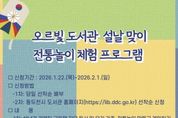 서울복지타임즈 이재연 기자 | 동두천시 도서문화사업소는 설날을 맞아 오르빛도서관에서 유아를 동반한 가족과 저연령 청소년을 대상으로 ‘설날 맞이 전통놀이 체험 프로그램’을 2월 4일 운영한다. 프로그램 참여 신청은 동두천시 도서관 홈페이지를 통해 선착순으로 접수하며, 신청 기간은 1월 22일부터 2월 1일까지다. 이번 프로그램은 가족이 함께 참여하며 세대 간 소통의 폭을 넓히고, 설 명절의 의미와 전통문화를 자연스럽게 체험할 수 있도록 기획됐다. 설날 관련 그림책 자유독서를 비롯해 만들기 키트를 활용한 윷놀이와 통통놀이 제작 및 게임 체험, 전통놀이 선생님과 함께하는 투호 등 체험 중심의 다채로운 프로그램으로 운영될 예정이다. 동두천시 도서문화사업소장은 “민족 최대의 명절인 설날을 맞아 어린이와 청소년이 전통문화를 놀이로 즐길 수 있도록 프로그램을 마련했다”라며 “가족이 함께 참여해 뜻깊은 명절 추억을 만들길 기대한다”라고 말했다. 프로그램과 관련한 자세한 사항은 동두천시 도서관 홈페이지에서 확인할 수 있다.