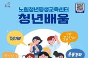 서울복지타임즈 이재연 기자 | 서울 노원구가 청년들을 위한 평생학습센터 '청년 배움'을 개소한다고 밝혔다. 구는 그간 청년들의 평생학습 기회 확대를 위해 한국성서대학교와 협력해 ‘다 담다’ 프로젝트를 운영해 왔다. 이를 통해 쌓은 경험과 성과를 바탕으로, 보다 안정적이고 지속적인 교육 제공을 위해 ‘청년 배움’을 개소하고, 구 직영으로 운영한다. ‘청년 배움’은 지난 8월 시범운영을 시작해 10월 1일 정식 개관했다. 운영 시간은 평일 오전 10시부터 오후 8시까지, 토요일은 오전 10시부터 오후 5시까지이며, 일요일과 공휴일은 휴관한다. 시범운영 기간동안 ‘청년 맞춤 발성훈련 클래스’, ‘바른자세 만들기 SNPE’, ‘몸과 마음 힐링 스트레칭’ 등 프로그램이 운영됐으며, 모든 강좌가 접수 당일 마감되는 등 높은 호응을 얻었다. 정식 개관 후 프로그램은 취업 및 실생활에 밀접하게 연관된 4개 영역 27개 과정으로 구성됐다. ‘청년 실전 up’ 영역에서는 ▲커뮤니케이션 및 면접 스피치 ▲브이로그 콘텐츠 기획 ▲소비 습관 진단 ▲브랜딩 스토리 등 7개 실전형 프로그램이 운영된다. ‘청년 마
