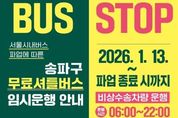 서울복지타임즈 이재연 기자 | 송파구는 서울시버스노동조합이 오는 13일부터 총파업 돌입을 예고함에 따라 구민들의 교통 불편 최소화를 위해 무료 셔틀버스를 투입하는 등 '비상수송대책'을 가동한다고 밝혔다. 구는 예고된 서울 시내버스 파업에 선제적으로 대비하기 위해 '비상수송대책본부'를 구성하고 상황실을 설치해 파업 종료 시까지 상황별 대응체계를 운영한다. 이에 따라 구 직원 52명이 매일 2교대로 근무하며 비상수송대책을 수행할 예정이다. 특히, 구는 13일 오전 6시부터 무료 셔틀버스(45인승 이상) 44대를 선제적으로 마련해 대중교통 접근성 취약 지역과 주요 지하철역을 연계하는 버스를 투입하여 구민 불편을 최소화할 계획이다. 무료셔틀버스는 총 9개 노선에 44대의 무료셔틀버스를 1일 총 324회 운행한다. 출퇴근시간에 집중 배차하여 이용 편의성을 높였다. 운행 노선은 ▲임시1번(천호역~풍납동~천호역) ▲임시2번(종합운동장역~잠실새내역~잠실7동~종합운동장역) ▲임시3번(잠실역~석촌역~삼전역~잠실역) ▲임시4번(가락시장역~오금역~경찰병원역~가락시장역) ▲임시5번(문정역~개롱역~오금동사거리~문정역) ▲임시6번(위례동