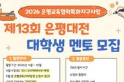 서울복지타임즈 이재연 기자 | 서울 은평구는 은평구진로직업체험지원센터 주관으로 진행되는 진로·진학 지원사업 ‘제13회 은평대전’에 참여할 대학생 멘토를 모집한다고 밝혔다. ‘은평대전’은 ‘은근히 평범한 대학생들의 전공 이야기’의 줄임말로, 대학생 멘토가 자신의 전공 선택 과정과 대학 생활, 진로 경험을 청소년 눈높이에 맞춰 전달하는 프로그램이다. 2014년 시작해 올해로 13년째를 맞았다. 프로그램은 ▲중·고등학교 방문 전공강연 ▲전공 체험 활동 ▲소그룹 전공 상담 ▲전공박람회 등으로 구성돼, 청소년에게는 진로 탐색 기회를, 멘토에게는 교육·소통 역량을 키울 수 있는 경험을 제공한다. 전공 멘토링에 관심 있는 대학생·대학원생(올해 신입생 포함)은 누구나 지원할 수 있으며, 은평구 출신 또는 거주자는 우대 선발한다. 멘토 모집 기간은 다음달 26일까지이며, 신청은 은평구진로직업체험지원센터 누리집 또는 홍보물 속 큐알(QR)코드를 통해 신청서를 내려받아 전자우편으로 제출하면 된다. 이와 함께 대학생 멘토기획단 ‘프리지아’ 8기도 내달 2일까지 모집한다. 프리지아는 은평대전 운영 전반을 지원