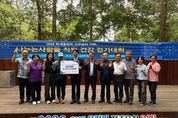 서울복지타임즈 이재연 기자 | (사)나누는 사람들가 지역사회 독거노인 지원을 위한 나눔 프로젝트인 ‘전주함께미(米)소(笑)’에 동참했다. (사)나누는 사람들은 19일 건지산 오송제 일대에서 9개 산하기관 임직원 100여 명이 참여한 가운데 ‘직원 건강 걷기대회’ 행사를 개최했다. 이번 건강걷기대회는 (사)나누는 사람들이 몸과 마음이 건강한 법인으로 나아가기 위해 마련된 행사로, 참석한 임직원들은 걷기운동과 건지산 진입로 줍깅, 환경보호활동, 미니올림픽 등을 진행했다. 특히 참여한 임직원들은 전주 하계올림픽 유치를 기원하는 퍼포먼스를 펼치기도 했다. 이와 함께 (사)나누는 사람들은 우범기 전주시장, 이순태 나누는 사람들 대표이사, 최재훈 전주시노인복지관연합회장 등이 참석한 가운데 전주지역 독거노인 지원을 위한 나눔 프로젝트인 ‘전주함께미(米)소(笑)’ 기부금 전달식을 가졌다. 이 자리에서 (사)나누는 사람들 임직원들은 나눔 문화 확산을 위한 프로젝트에 적극 동참하겠다는 의지를 담아 모은 현금 300만 원을 전주시에 전달했다. 전달된 기부금은 전주지역 7개 노인복지관에서 모금된