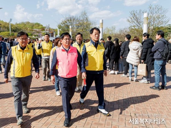 서울복지타임즈 이득형 기자 | 박강수 구청장이 8일 오후 4시 30분에 개최될 2023 하나원큐 K리그의 FC서울 vs 대구 경기를 앞두고 민·관 인력 60명을 동원하여 다중인파 안전관리를 실시했다.