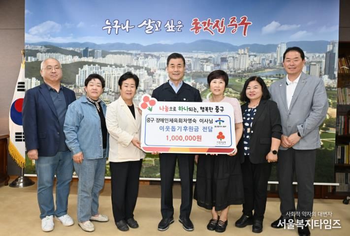 중구는 후원단체의 뜻에 따라 해당 후원금을 (사)울산광역시 지체장애인협회 중구지회에 전달할 예정이다.