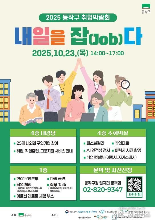 서울복지타임즈 이재연 기자 | 동작구가 오는 23일 오후 2시 구청 신청사에서 2025 취업박람회 ‘내일을 잡(Job)다’를 개최한다고 밝혔다.