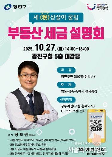 서울복지타임즈 이재연 기자 | 광진구는 10월 27일 오후 2시 광진구청 대강당에서 구민을 대상으로 ‘알기 쉬운 부동산 세금 설명회’를 개최한다.