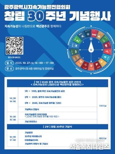 서울복지타임즈 이재연 기자 | 광주광역시는 오는 27일 오후 2시 시청 대회의실에서 ‘지속가능발전협의회 창립 30주년 기념행사’를 개최해 지속가능한 도시 광주의 미래를 위한 ‘2045 지속가능한 도시 광주비전’을 발표한다.