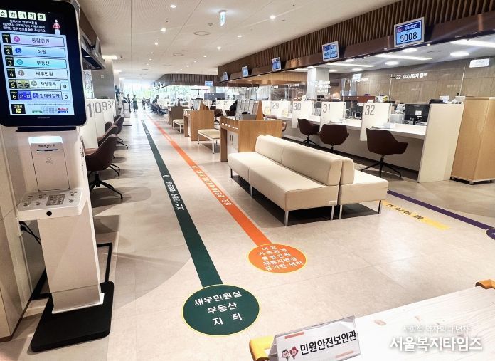 광진구는 지난 4월 신청사로 이전하면서 구민들이 자주 찾는 민원여권과·부동산정보과·세무·주택임대·자동차등록 등 민원 관련 부서를 한곳으로 통합한 ‘통합민원실’을 운영하며 구민 편의를 획기적으로 높였다.