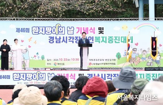 서울복지타임즈 이재연 기자 | 경남도는 22일 오전 창원스포츠파크 보조경기장에서 열린 ‘제46회 흰 지팡이의 날 기념식’에서 “흰 지팡이는 시각장애인의 자립과 성취, 평등한 사회 참여를 상징한다”며 “오늘이 더불어 살아가는 사회를 위해 흰 지팡이의 의미를 알리는 날이 되길 바라며, 시각장애인의 권익과 복지 증진에 힘쓰겠다”고 밝혔다.