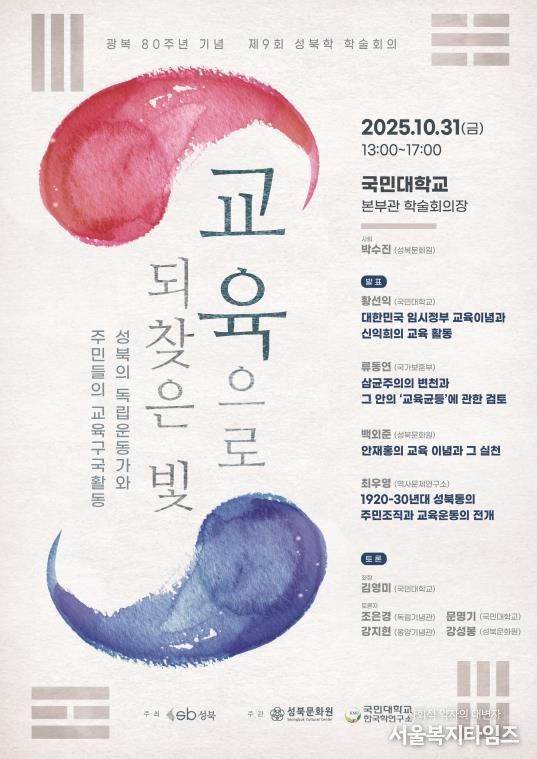 서울복지타임즈 이재연 기자 | 서울 성북구는 오는 10월 31일, 성북문화원과 국민대학교 한국사연구소가 공동 주관하는 광복 80주년 기념 제9회 성북학 학술회의 ‘교육으로 되찾은 빛’을 개최한다고 밝혔다.
