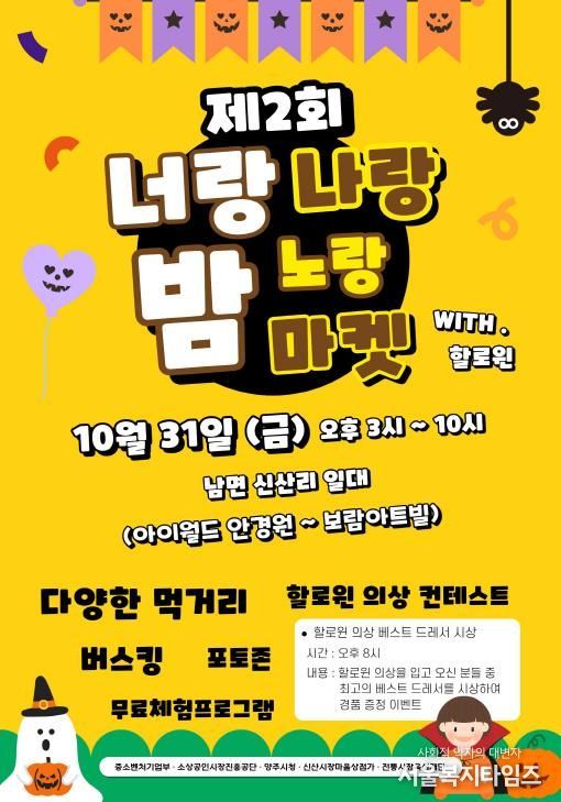 서울복지타임즈 이재연 기자 | 양주시가 신산시장마을번영회와 공동 주관으로, 오는 31일 남면 상가거리(개나리길 74 일원)에서 “제3회 너랑나랑노랑 밤 마켓” 축제를 개최한다.