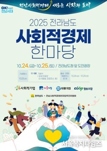 서울복지타임즈 이재연 기자 | 전라남도가 24~25일 도청 앞 도민광장에서 ‘2025년 전남 사회적경제 한마당’ 행사를 개최한다.