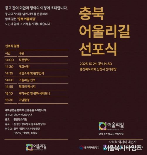 충북도 관계자는 “이번 선포식이 종교 간 평화와 문화적 공존을 향한 새로운 출발점이 되길 기대한다”며, “도민 모두가 함께 걷고 소통하는 어울림의 길이 지속적으로 확산되길 바란다”고 밝혔다.