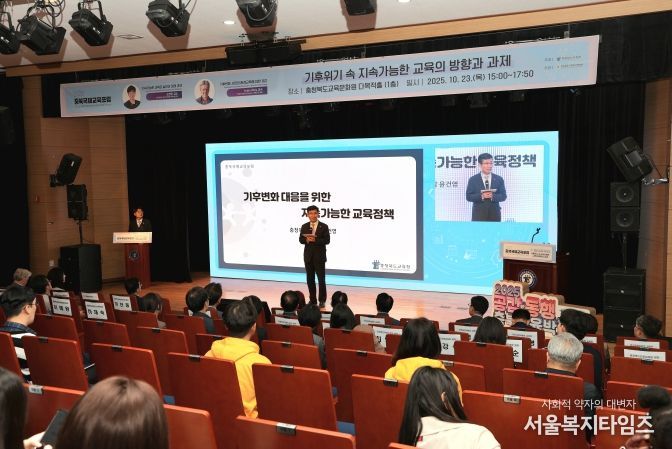 서울복지타임즈 이재연 기자 | 충청북도교육청은 23일, 교육문화원 다목적홀에서 기후위기 속 지속가능한 교육의 방향과 과제를 주제로 2025. 충북국제교육포럼을 개최했다.