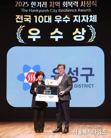 서울복지타임즈 이재연 기자 | 대전 유성구가 지난 23일 서울 중구 대한상공회의소 국제회의장에서 열린 '2025 한겨레 지역 회복력 평가' 시상식에서 전국 10대 우수 지방자치단체에 선정됐다.