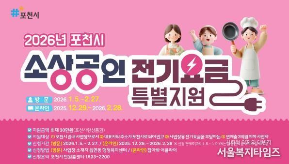 서울복지타임즈 이재연 기자 | 포천시는 18일 관내 소상공인의 고정비 부담을 완화하고 경영 안정을 지원하기 위해 ‘소상공인 전기요금 특별지원사업’을 추진한다고 밝혔다.