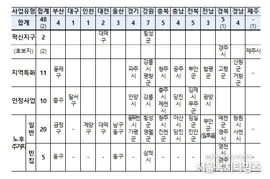 공모는 7월부터 9월까지 진행됐으며, 총 69곳이 접수했다. 서류검토, 현장실사, 도시·건축·부동산·교통 등 관계 분야 전문가 종합자문평가 등을 거쳐 대상지 여건, 사업의 타당성, 경제적 파급효과 등을 심층적으로 평가했고, 완성도 높은 사업지 총 48곳을 선정했다.