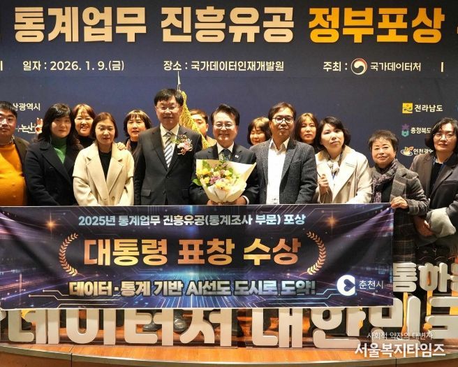 서울복지타임즈 이재연 기자 | 춘천시가 9일 2025년 통계업무 유공을 인정받아 강원특별자치도 18개 시군 중 최초로 대통령 표창을 수상했다.