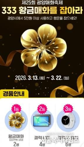 추첨을 통해 333만 원 상당의 황금매화(2명)를 비롯해 갤럭시탭, 갤럭시워치 등 다양한 경품이 제공된다.