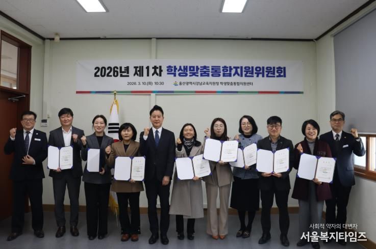 서울복지타임즈 이재연 기자 | 울산 강남교육지원청은 10일 소담실에서 ‘2026년 제1차 학생맞춤통합지원위원회’를 열고 지역 단위 학생맞춤통합지원 정책 추진 방향을 논의했다.