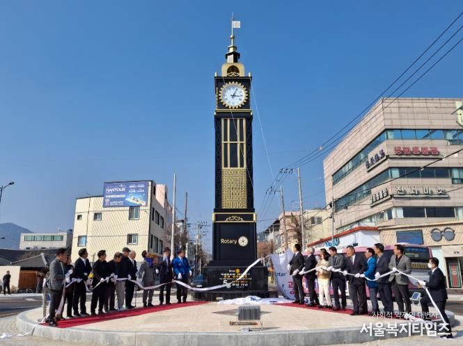 서울복지타임즈 이재연 기자 | 광양로타리클럽은 지난 3월 10일 광양읍 목성중앙로사거리 회전교차로(구 시계탑사거리)에서 창립 50주년을 기념하는 시계탑 제막식을 개최했다.