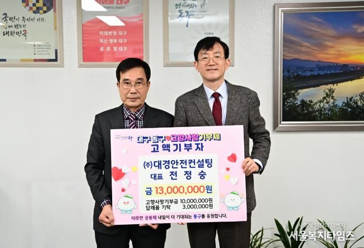 서울복지타임즈 이재연 기자 | ㈜대경안전컨설팅 전정숭 대표는 지난 18일, 고향사랑기부금 1천만원을 기부했다.