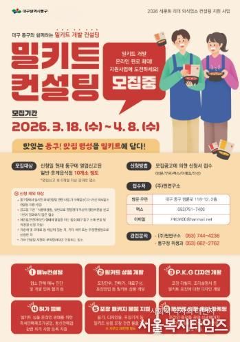 서울복지타임즈 이재연 기자 | 대구 동구청은 4월 8일까지, ‘식문화 리더 외식 업소 컨설팅 지원사업’ 참여업소를 모집한다.