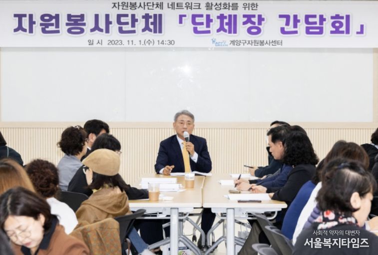 서울복지타임즈 이득형 기자 | 인천시 계양구자원봉사센터는 1일 계양구청 6층 대회의실에서 2023년 하반기 ‘자원봉사단체 단체장 간담회’를 진행했다.