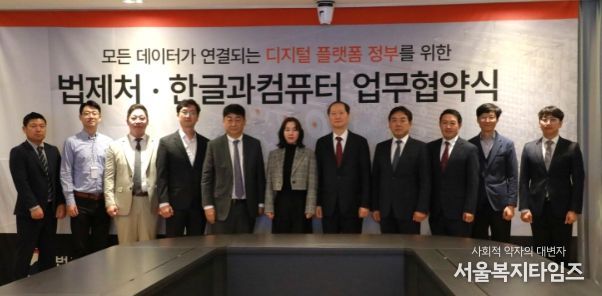 서울복지타임즈 이득형 기자 | 법제처는 3일, 인공지능(AI) 및 데이터 산업의 경쟁력을 강화하고, 인공지능(AI)의 사회적 가치와 공익을 실현하기 위해 ㈜한글과컴퓨터와 업무협약(MOU)을 체결했다.