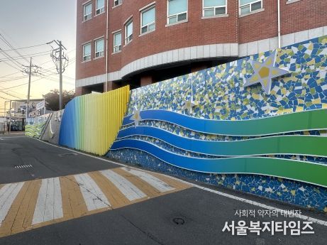 인근 주민과 학부모들은 “크고 삭막했던 학교 옹벽이 세련된 디자인으로 새롭게 단장돼 보고 있으면 기분이 좋아진다.”라며 만족했다.