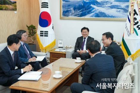오영훈 제주특별자치도지사와 강희업 국토교통부 대도시권광역교통위원장은 3일 오전 도지사 집무실에서 제주 대중교통 체계 개선방안에 대한 의견을 교환했다.