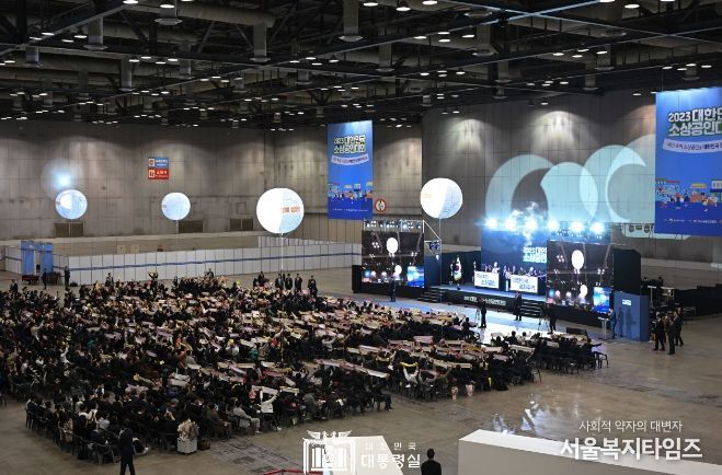 서울복지타임즈 이득형 기자 | 윤석열 대통령은 11월 3일 오전 일산 킨텍스에서 개최된 ‘2023 대한민국 소상공인대회’에 참석했습니다. 올해로 18년째를 맞은 대한민국 소상공인대회에 대통령이 참석한 건 올해가 처음이다. 오늘 행사에는 요식업, 미용업 등 다양한 업종의 소상공인 2천여 명이 전국 각지에서 모였다.