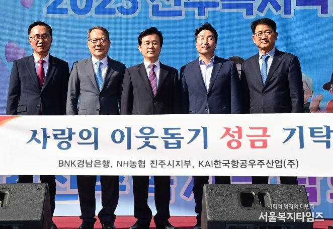 이날 기탁식에는 이일환 BNK(주)경남은행 서부영업본부장, 김정구 NH농협은행(주) 진주시지부장, 최인수 KAI(한국항공우주산업주식회사) 경영지원실장이 참석했다. 기탁된 성금은 향후 관내 저소득층 노인 및 장애인, 소외계층에게 복지서비스를 제공할 예정이다.