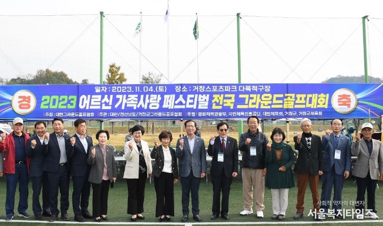 서울복지타임즈 이득형 기자 | 거창군은 4일 전국 17개 시도에서 700여 명이 참가한 가운데 거창스포츠파크 다목적구장에서 ‘2023 어르신 가족사랑 페스티벌 전국 그라운드 골프대회’를 개최했다.